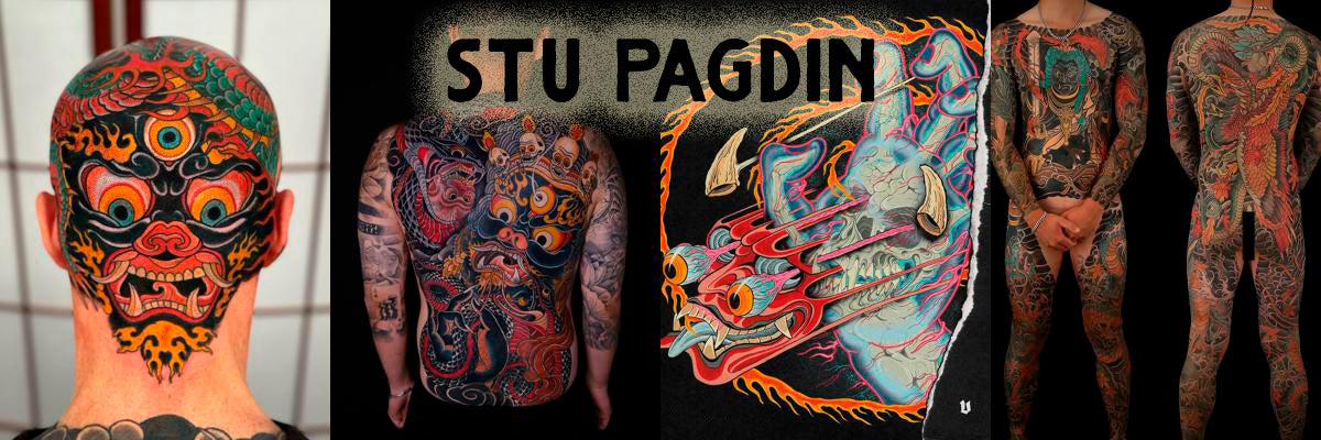 Stu Pagdin is an Australian tattoo artist based in Adelaide, renowned for his custom tattoos inspired by traditional Japanese art. He runs his studio Meiji Tattoo, where he also releases curated prints and art pieces under his label, “Split Headz. With over nineteen years in the industry, Pagdin blends precision line-work with bold motifs, making his pieces stand out in both the tattoo and art-print world.