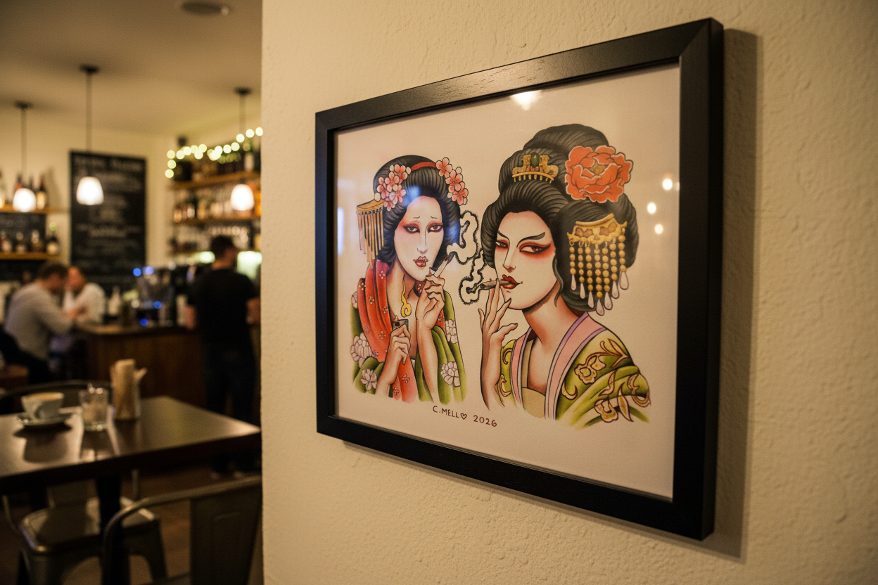 Each print is produced with precision by Mindzai Creative in Austin, Texas, making it a lasting collectible for fine art and tattoo-inspired interiors.