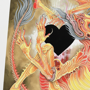 “Horny and Handsy” by artist Derek Noble brings his signature bold, surreal tattoo style to a richly detailed digital print on watercolor paper. Printed with archival, lightfast pigments, this piece maintains vibrant color and fine texture meant to last for decades. Produced by Mindzai Creative in Austin, Texas, each print is crafted with exceptional quality and attention to detail.