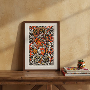 Acrylic and Indian Ink painting on cotton paper. Inspired by classic flash. Revisited and painted by Francesco Ferrara
