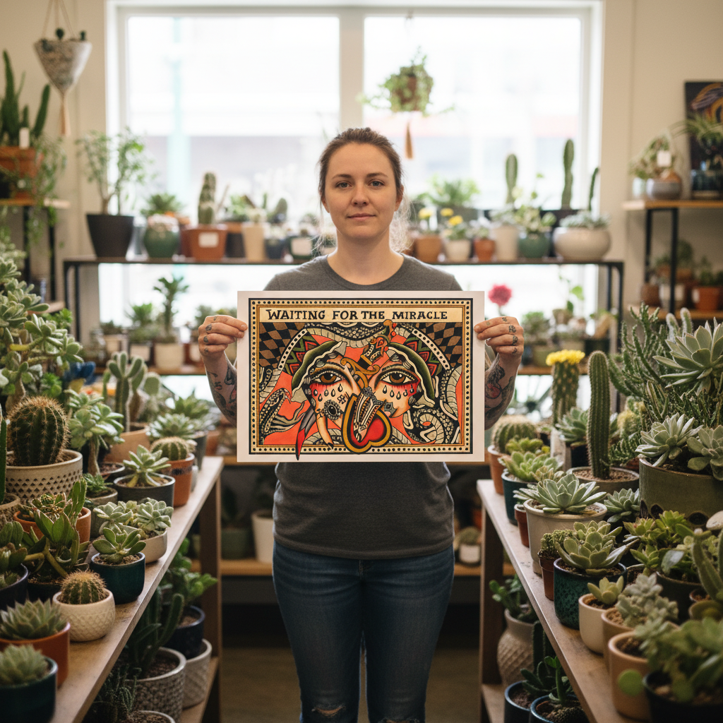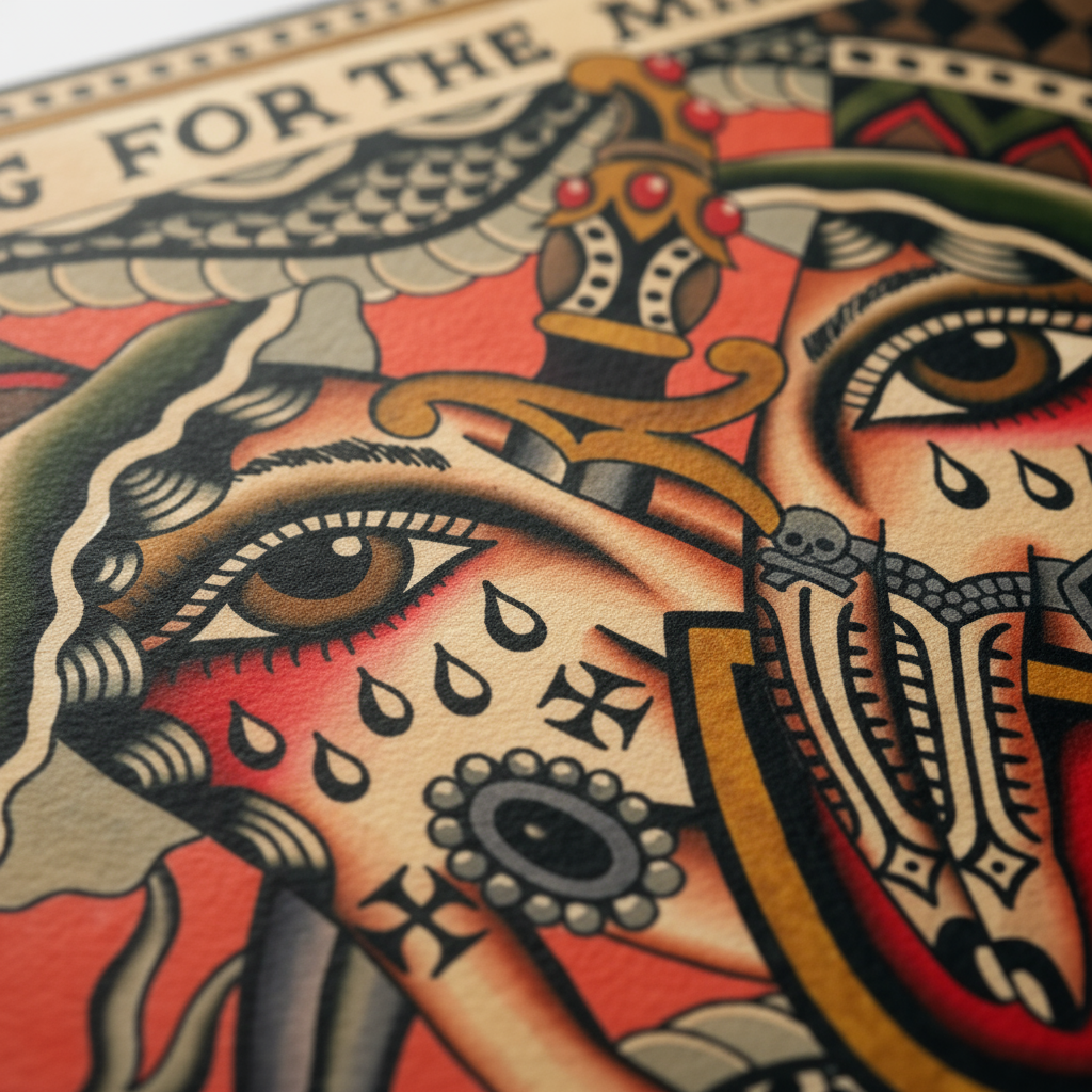 Printed in-house as a premium fine-art giclée using archival methods at Mindzai Creative on archival fine-art stock, this piece stands as both flash and fine art — a dramatic, romantic centerpiece for collectors and tattooers.