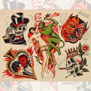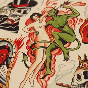 Devil Flash dives into classic themes of temptation, desire, and danger — rooted in old-school tattoo folklore and timeless Americana symbolism.