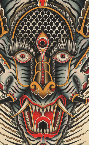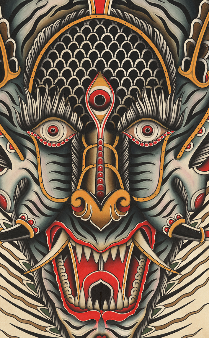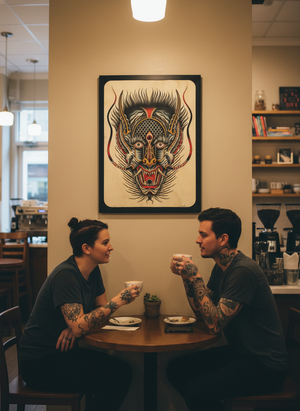 Printed in-house as a premium fine-art giclée using archival methods at Mindzai Creative on archival fine-art stock, this piece stands as both flash and fine art — a dramatic, romantic centerpiece for collectors and tattooers.