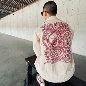 Our newest collaboration is with world-renowned tattooer, Robert Atkinson. These custom cut and sewn coaches jackets are made of 100% waterproof nylon. They come with a Mindzai branded PVC patch on the front left chest, screen printed skull & snake design on the full back, metal laser etched front snap buttons, and a branded drawstring. This is a limited edition item...only 150 made...so once they're gone, they're gone for good!