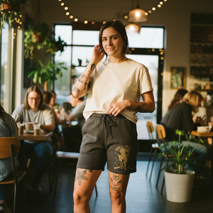 The Shrouded Panther Shorts pay homage to underground tattoo history, drawing inspiration from Dan Higgs’ iconic flash from the early '90s. Reimagined through the Mindzai, the wrapped panther symbolizes restraint, power, and transformation — a quiet nod to hardcore, tattoo, and DIY culture.