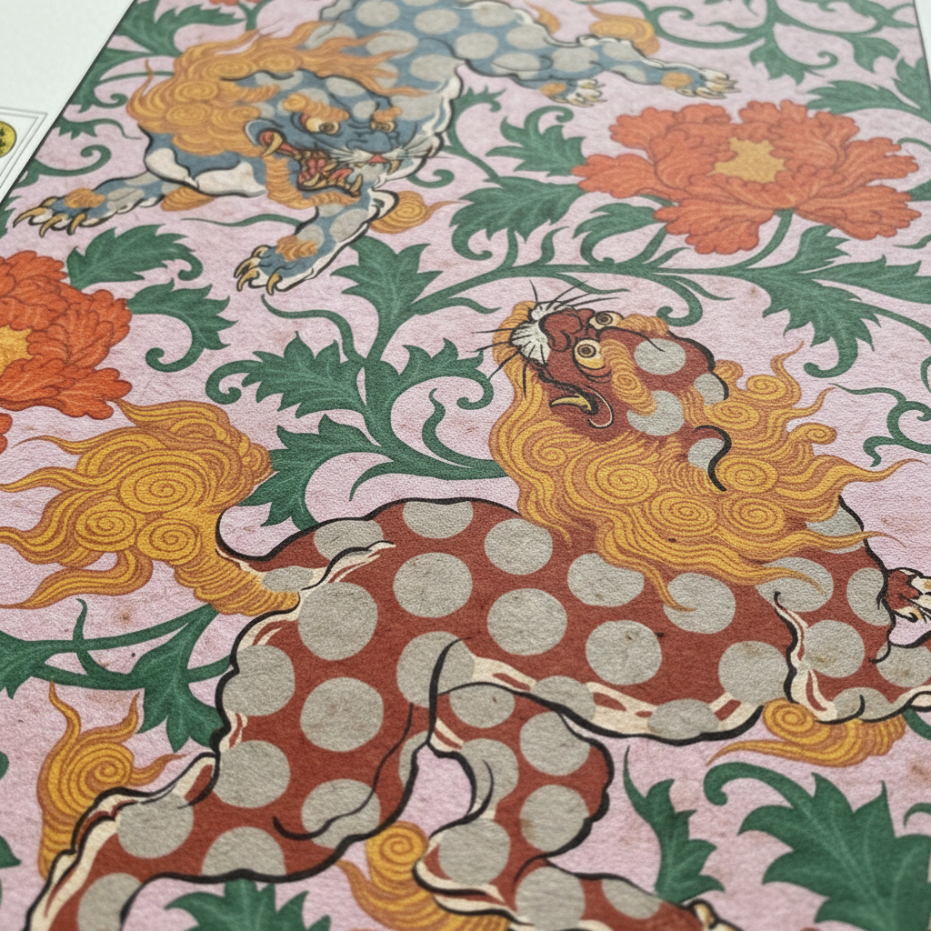“Foo Dog” showcases Stewart Robson’s deep mastery of classical Japanese ornamentation. The fierce guardian lions move dynamically through a dense field of bold peonies and flowing foliage, creating a powerful blend of protection, ferocity, and elegance.