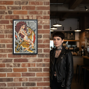 Printed in-house as a premium fine-art giclée using archival methods at Mindzai Creative on archival fine-art stock, this piece stands as both flash and fine art — a dramatic, romantic centerpiece for collectors and tattooers.
